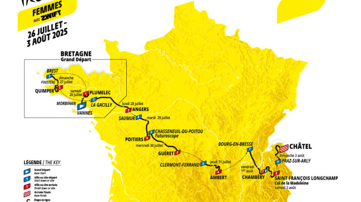 El Tour de Francia Femenino 2025 con Zwift se celebrará del 26 de julio al 3 de agosto, con salida en Vannes y llegada en Châtel. Nueve etapas, 1